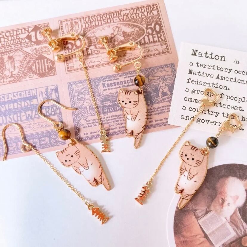 いたずらつままれ猫さん ピアス/イヤリング/マスクアクセサリー