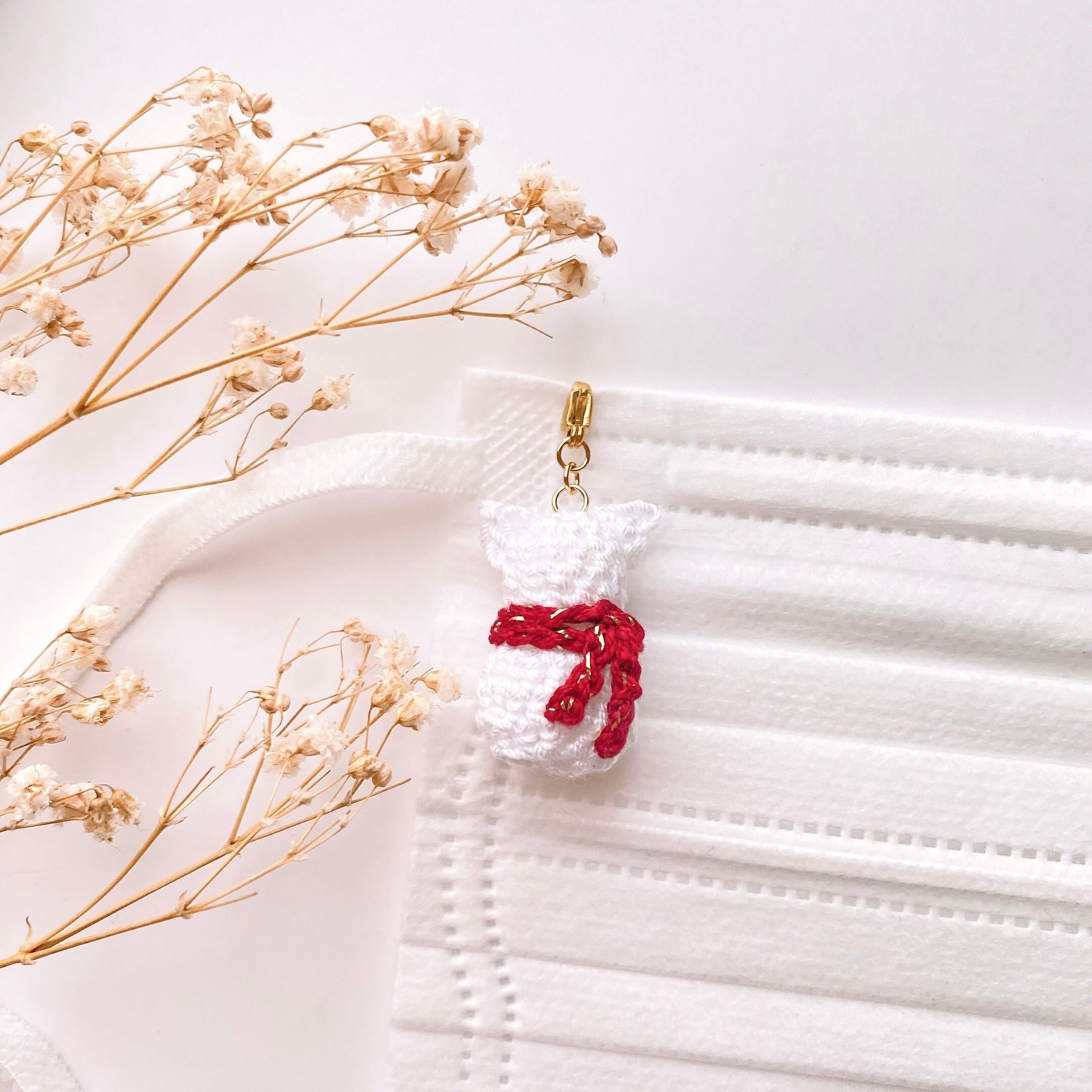 赤いマフラーを巻いた白猫ちゃん マスクチャーム