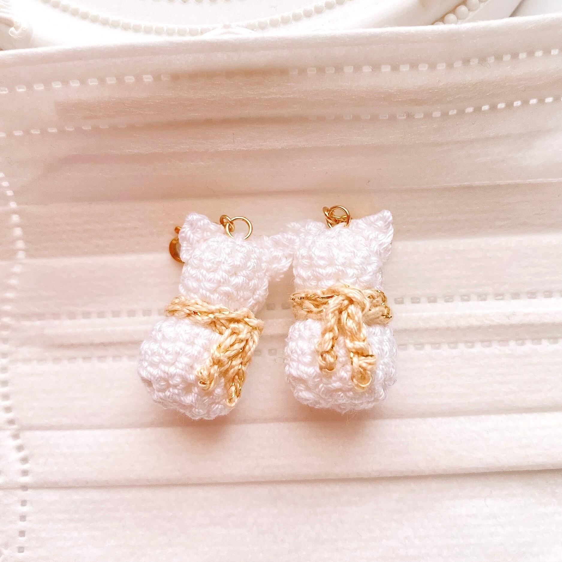 ベージュのマフラーを巻いた白猫ちゃん マスクチャーム