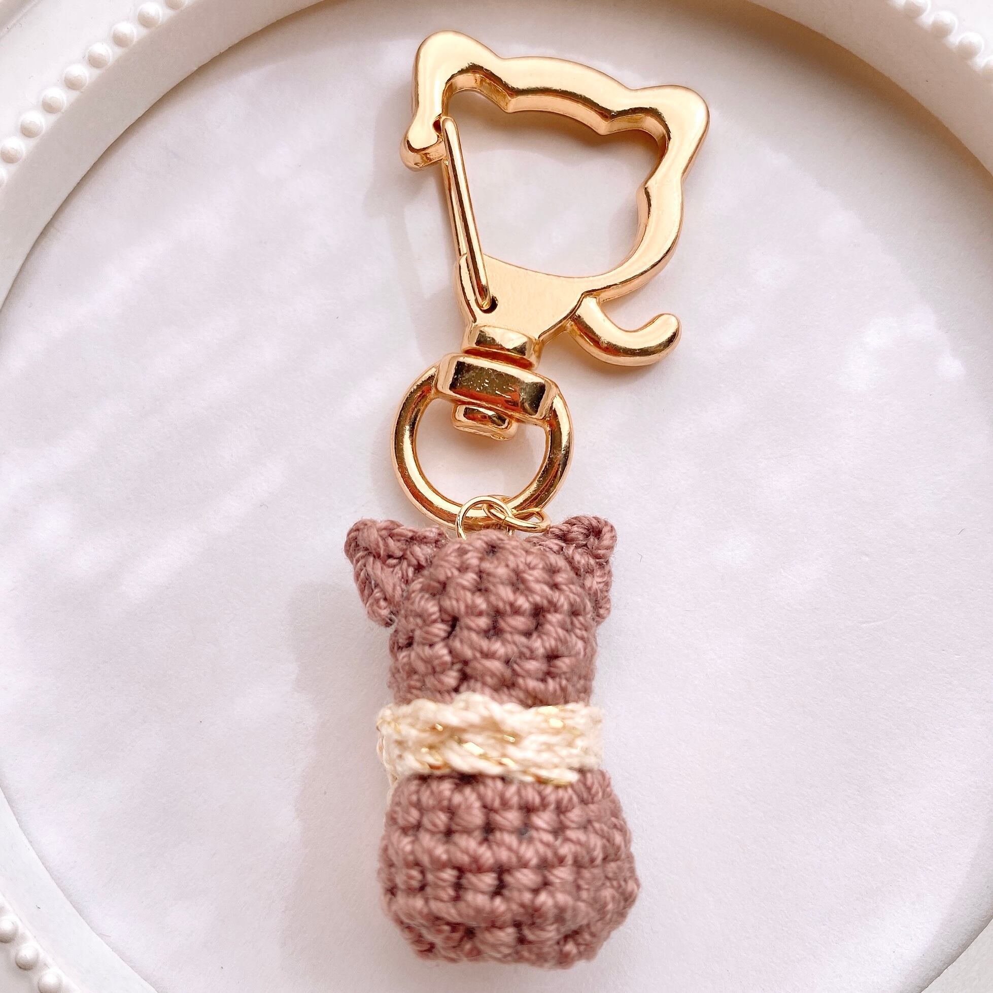ベージュのマフラーを巻いた茶猫ちゃん 猫型 バックチャーム