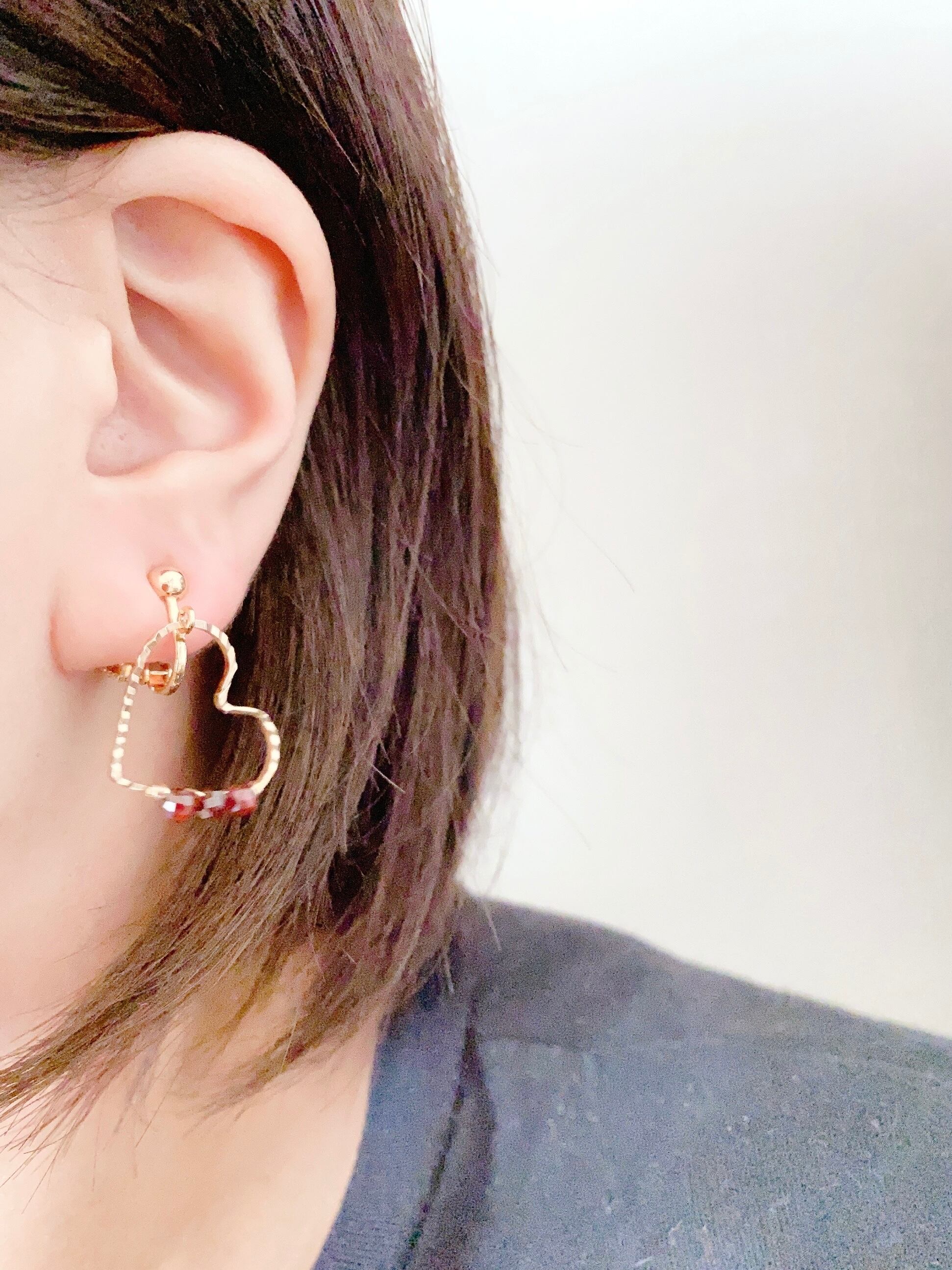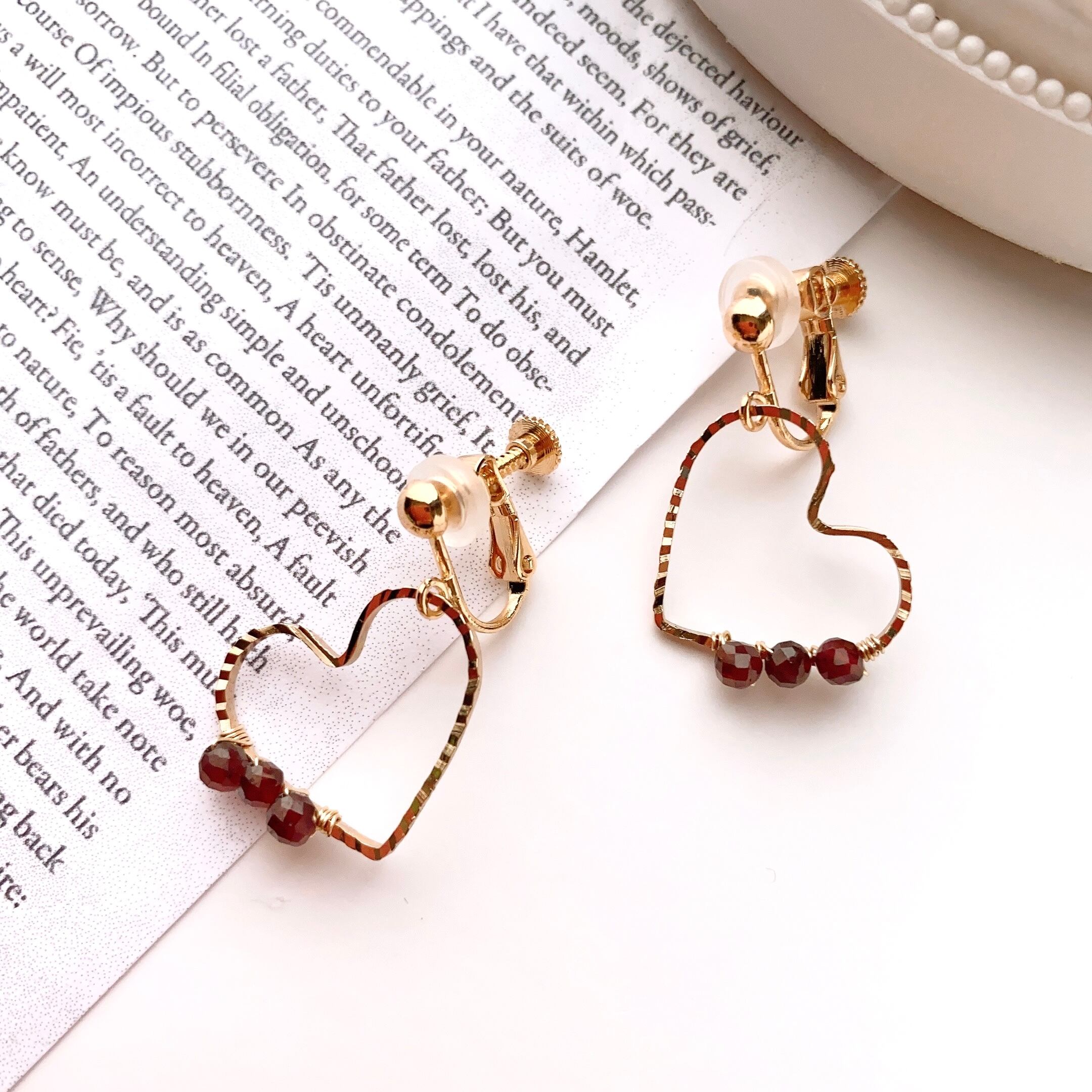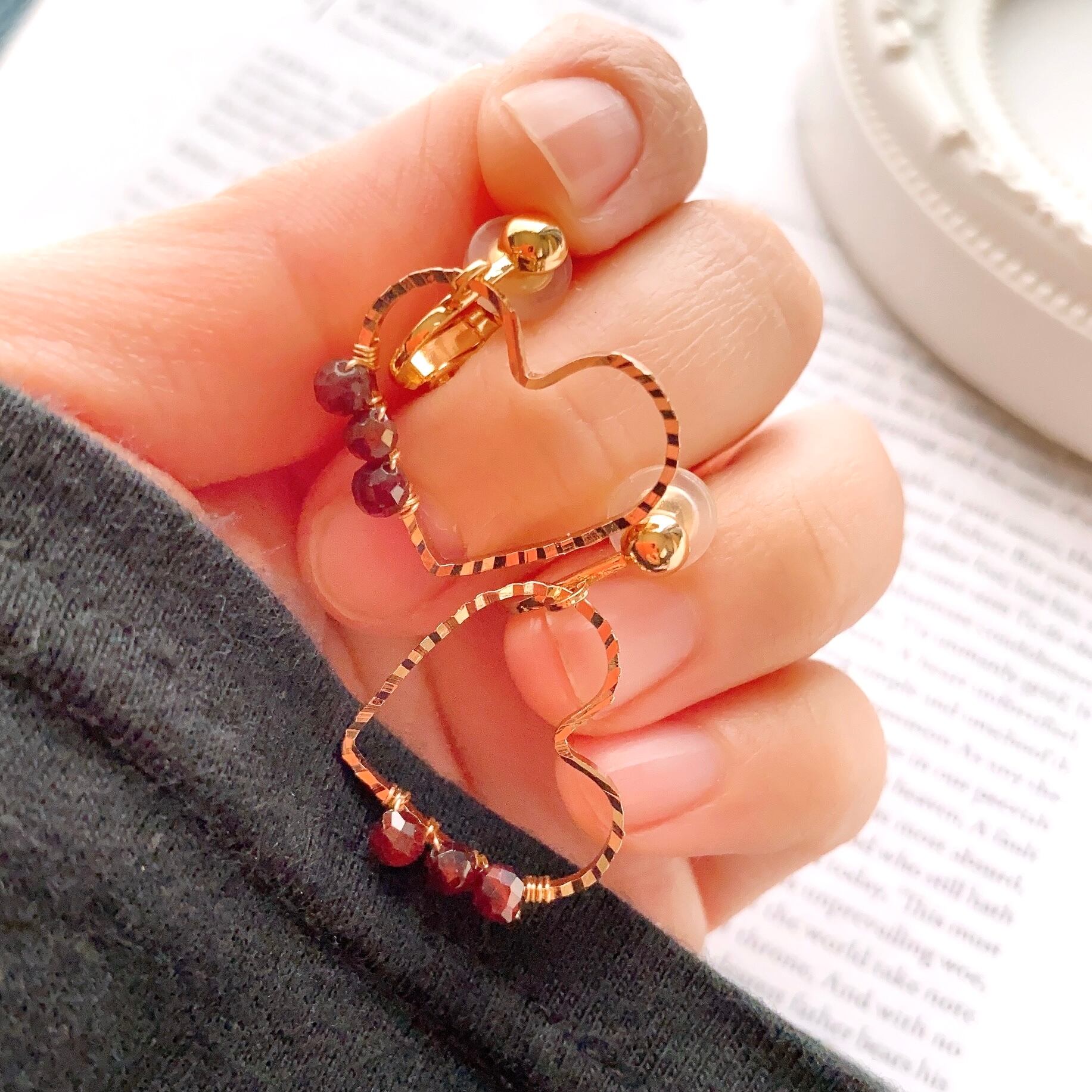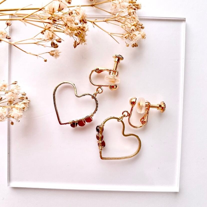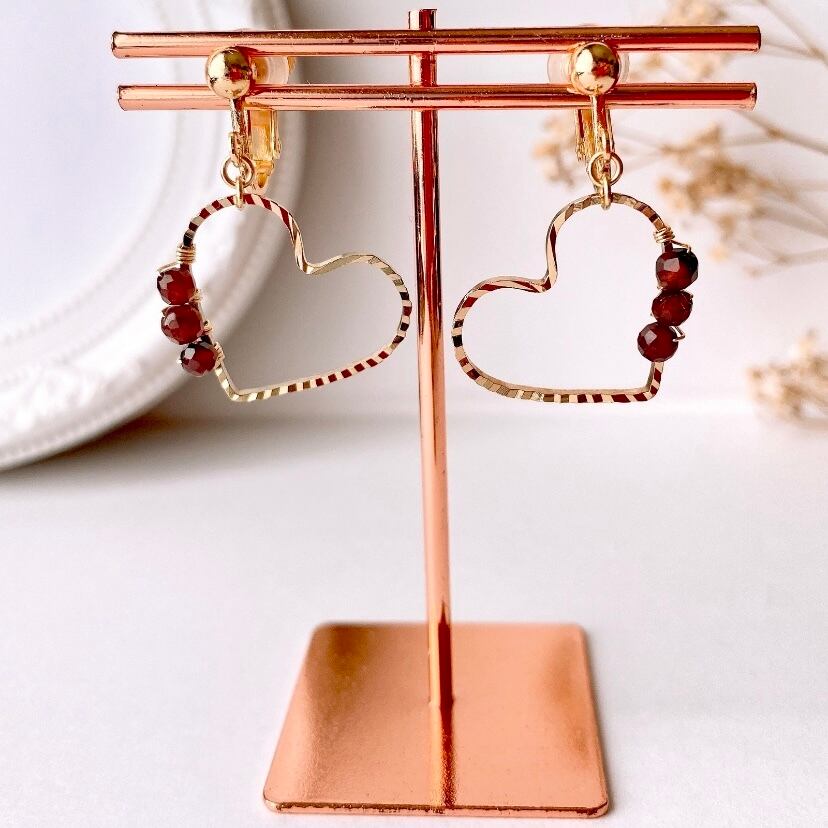 天然石のガーネットを使用したハートのアクセサリーです.*・゚