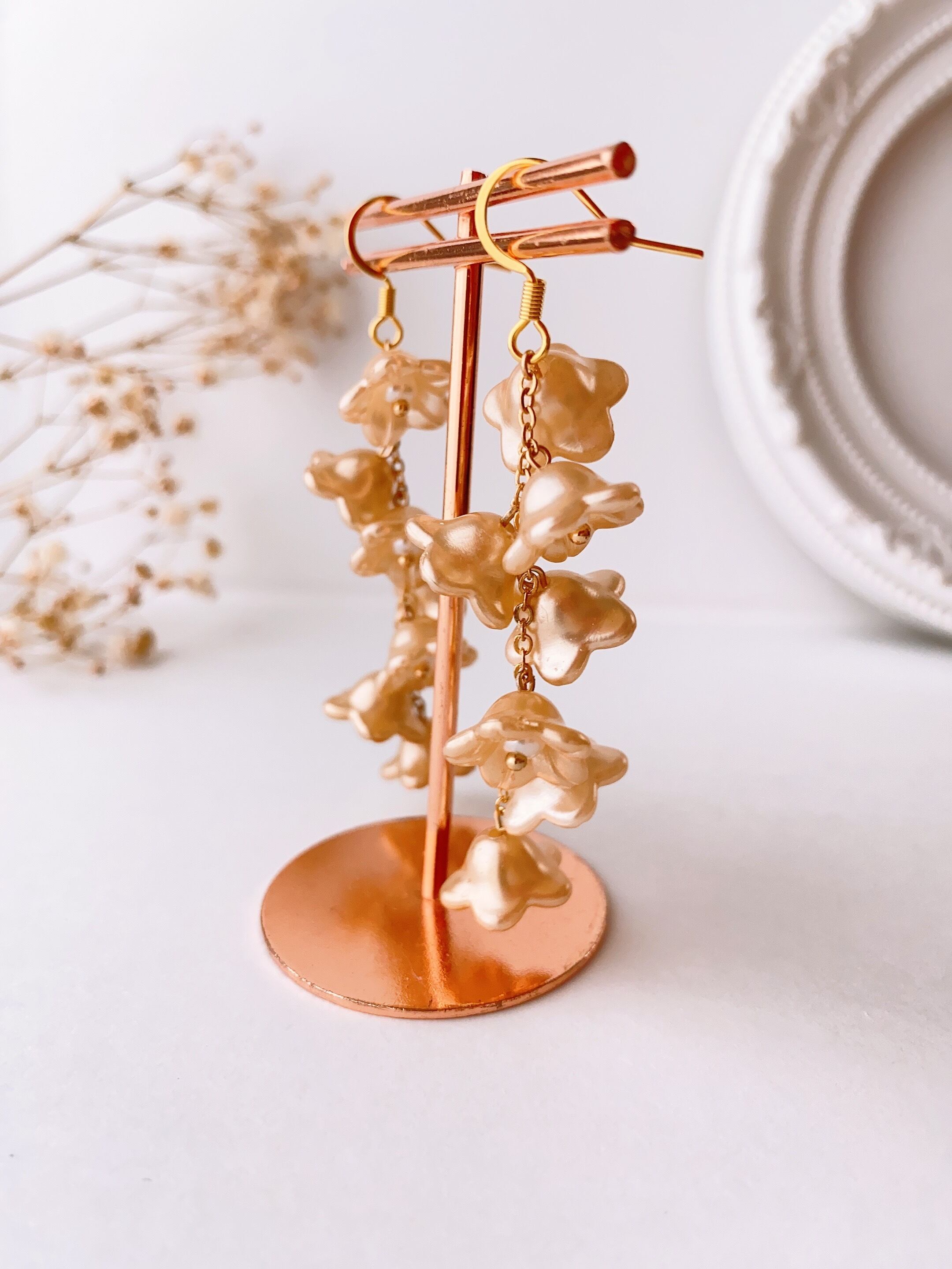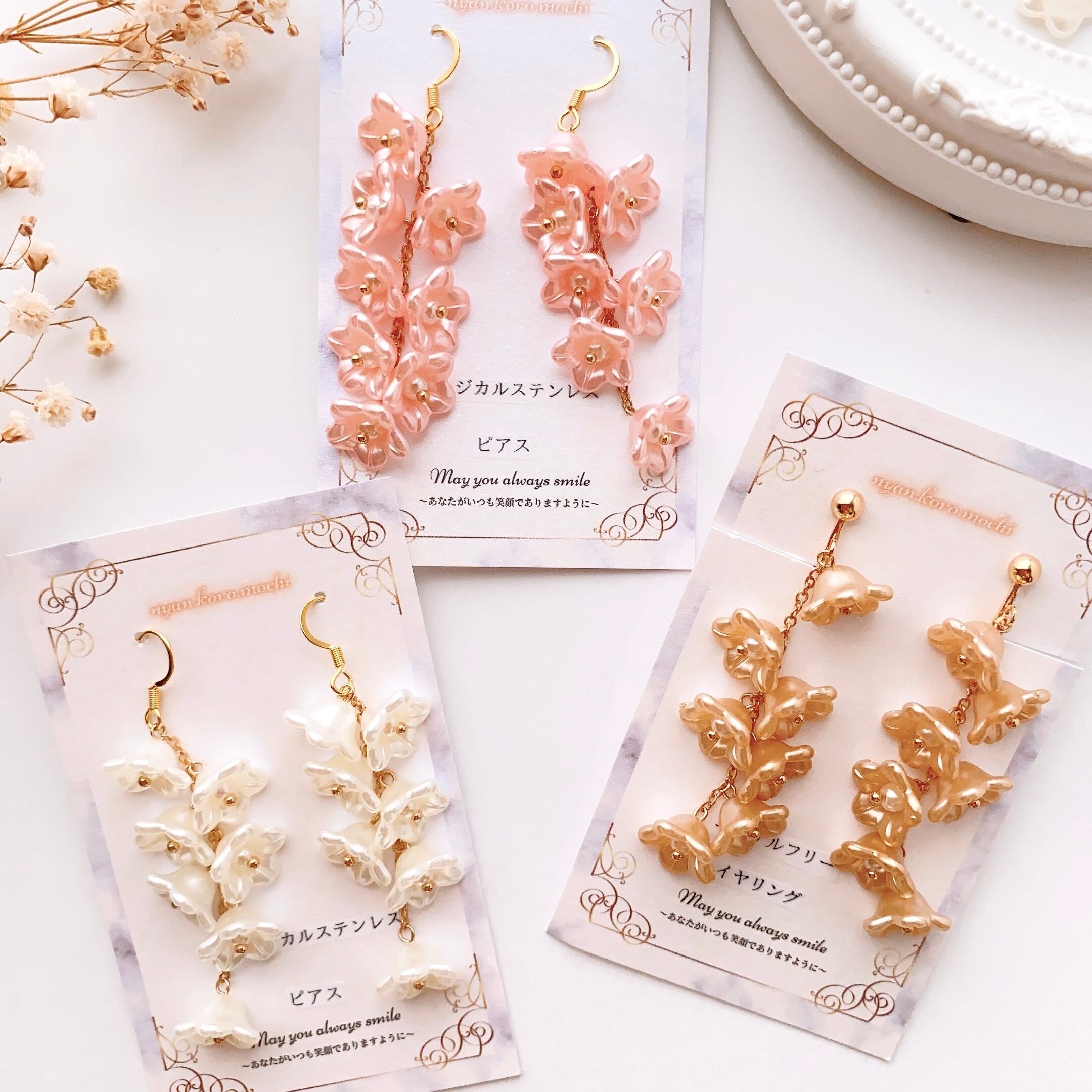 耳元もお花にしたいとおもい、華やかに見えるようにたくさん付けました☺️