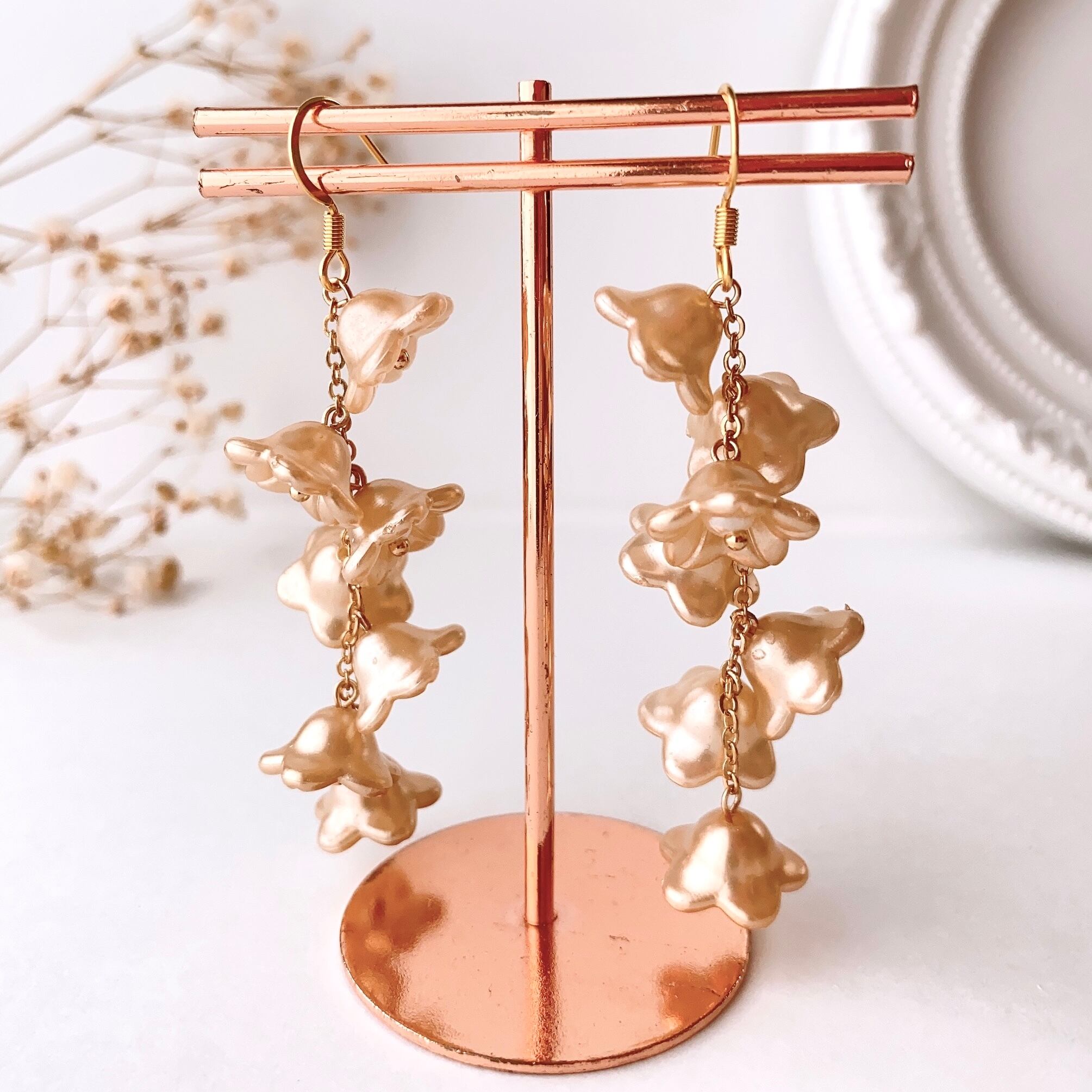 flower in full bloom ベージュ フックピアス