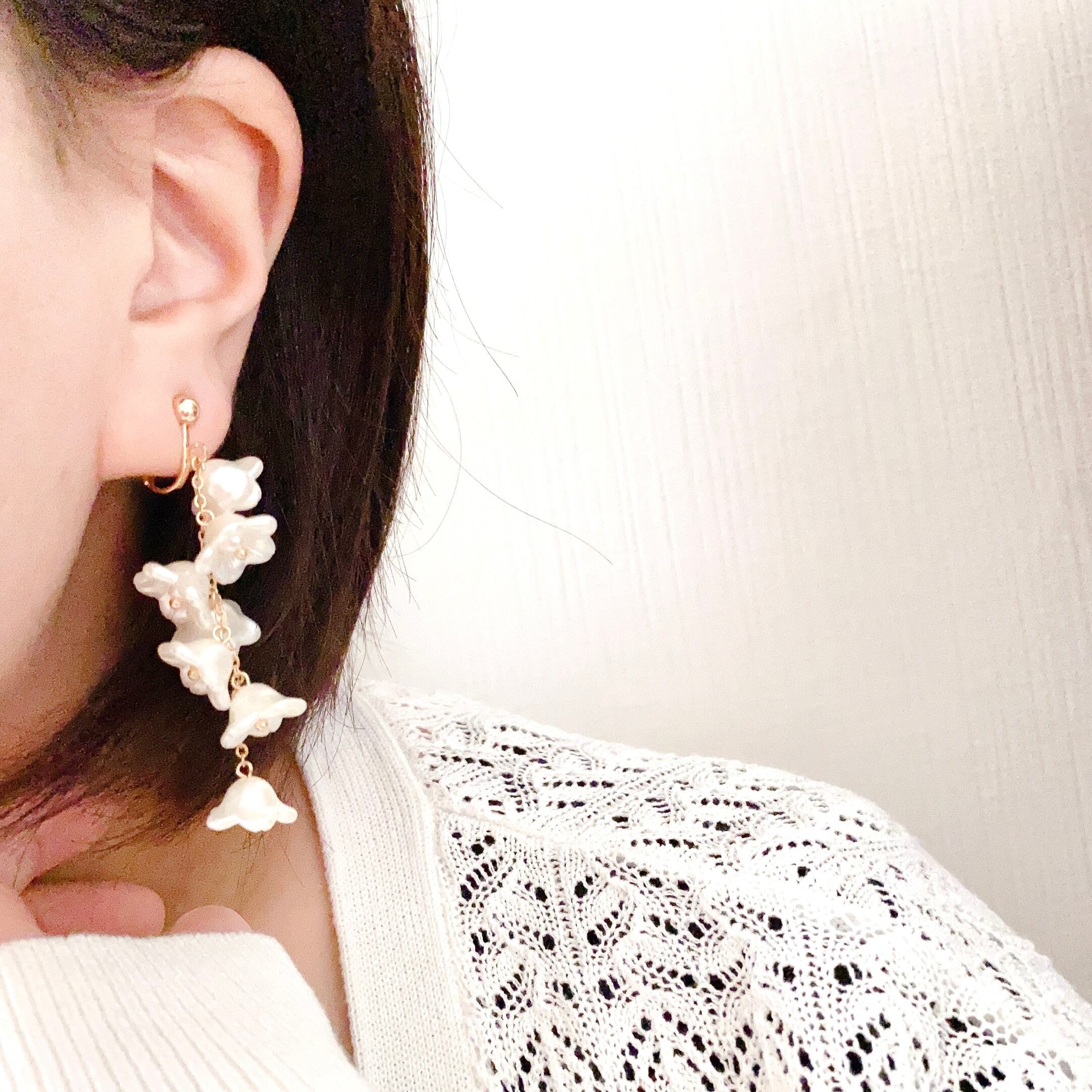 耳元もお花にしたいとおもい、華やかに見えるようにたくさん付けました☺️